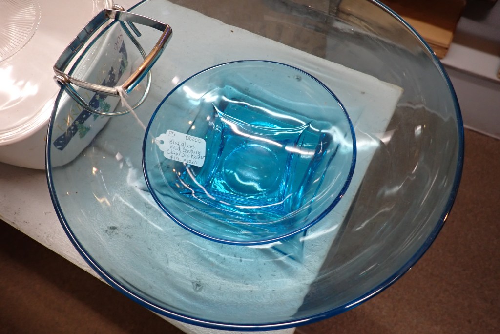 The coolest thing we found was the Hazel Atlas Capri Colonial Chip ‘n Dip set from the 1960s. This is an example of something that I pretend to buy for the shop, but secretly plan to keep it and use it for myself.